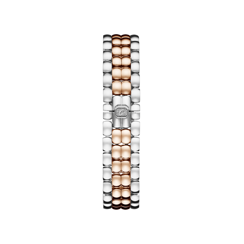 La collection Happy Sport est l’emblème même de la créativité et de l’audace de Chopard. Ses pierres précieuses enjouées, dansant entre deux glaces saphirs, font rêver depuis 1993, date à laquelle Chopard est devenue la première Maison à associer l’acier et les diamants. Grâce à son expertise horlogère, Chopard a doté la Happy Sport Oval d’un mouvement mécanique à remontage automatique développé spécialement pour les boîtes féminines. Little Diamonds Do Great Things