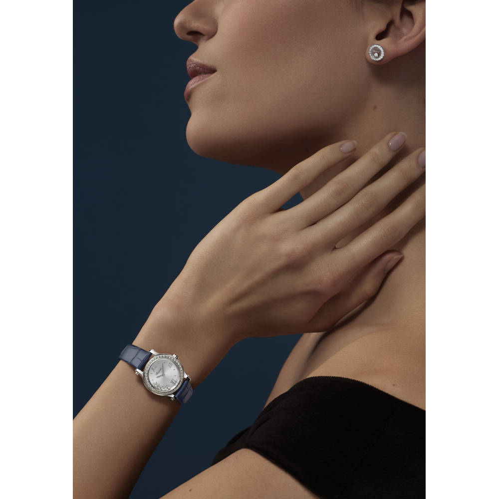 La collection de montres à diamants mobiles pour femme Happy Sport est l’emblème même de la créativité et de l’audace de Chopard. Ses diamants enjoués, dansant entre deux glaces saphirs, font rêver depuis 1993, date à laquelle Chopard est devenue la première Maison à associer acier et diamants. Little Diamonds Do Great Things.