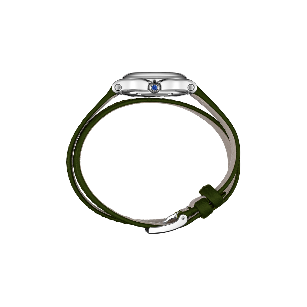 Bracelet: Bracelet luxueux en cuir de veau vert avec surpiqûres ton sur ton