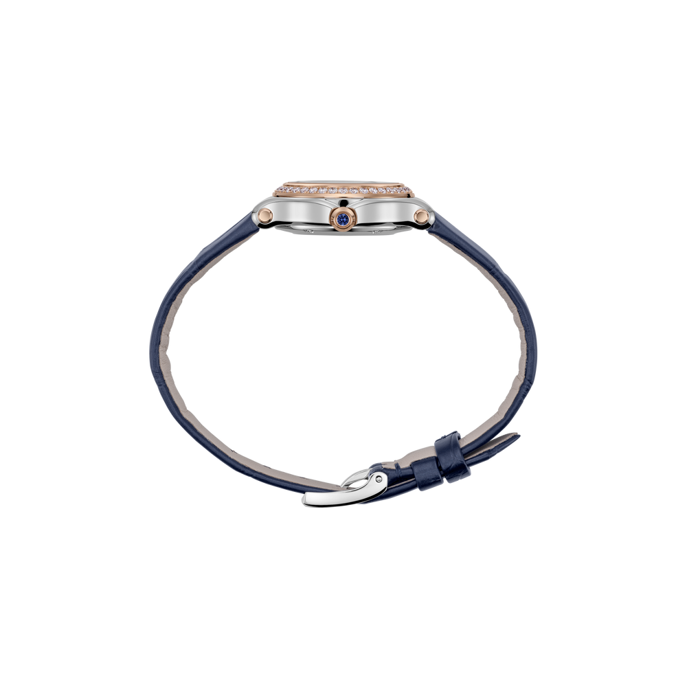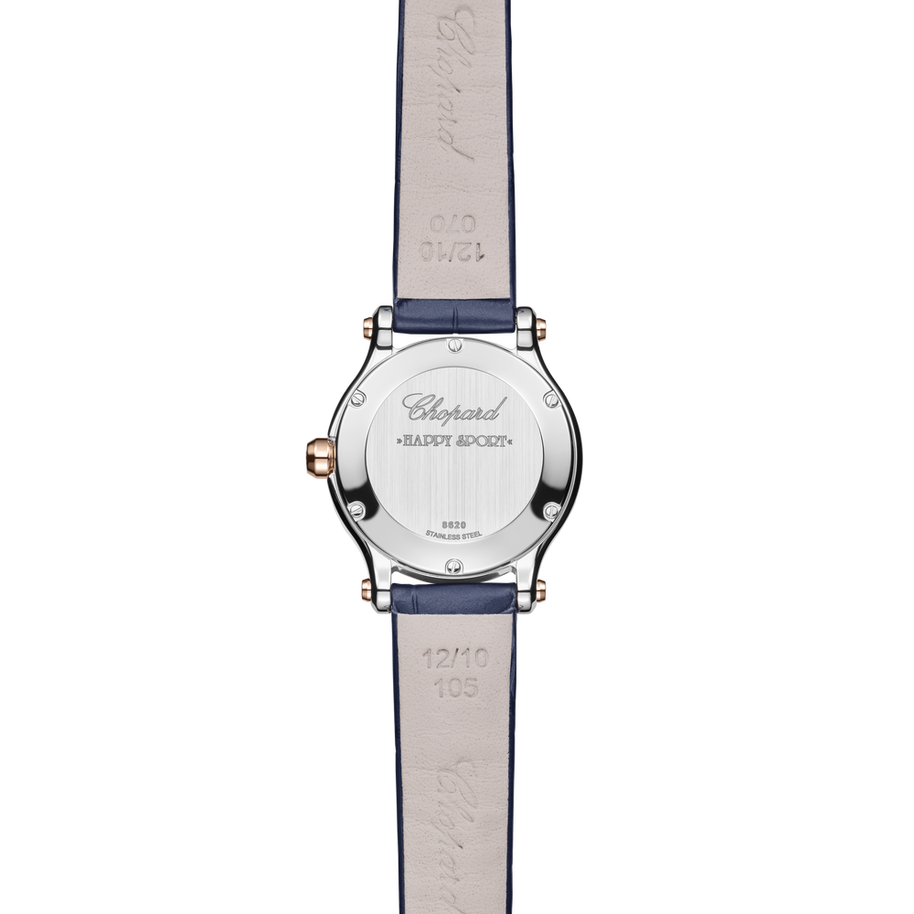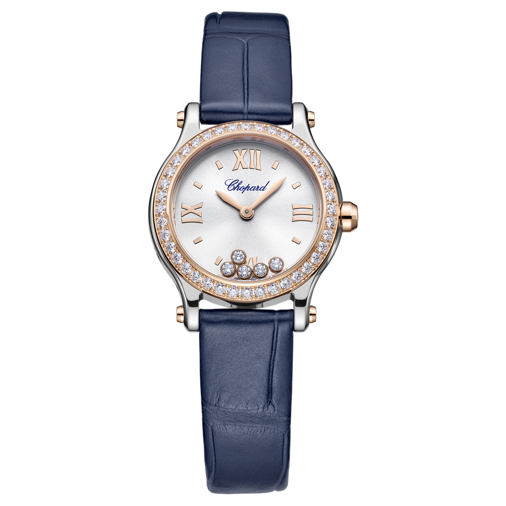 La collection de montres à diamants mobiles pour femme Happy Sport est l’emblème même de la créativité et de l’audace de Chopard. Les pierres précieuses enjouées de cette montre en or rose et Lucent Steel™, dansant entre deux glaces saphirs, font rêver depuis 1993, date à laquelle Chopard est devenue la première Maison à associer Lucent Steel™ et diamants. Little Diamonds Do Great Things.