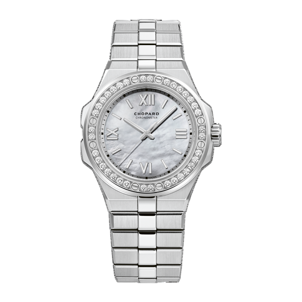 À la fois élégante et sportive, la nouvelle collection Alpine Eagle propose une interprétation moderne de la St. Moritz, première montre créée par Karl-Friedrich Scheufele, aujourd'hui coprésident de Chopard, sortie en 1980. Né de la passion de son créateur pour le massif alpin et inspiré de la noblesse de l'aigle, Ce garde-temps serti de diamants a été façonné dans un métal exclusif, réfléchissant et ultra-résistant du nom de Lucent Steel™ et renferme un mouvement certifié chronomètre. Alpine Eagle rend hommage aux « aigles » d'aujourd'hui – des personnes ambitieuses qui se dépassent au quotidien et dont la vision est une source d'inspiration pour leurs pairs. Avant-gardistes et déterminés, ils relèvent avec panache les défis de demain et connaissent d'instinct l'importance des questions environnementales.