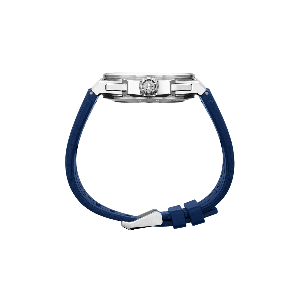 Cadran: de couleur bleue Aletsch obtenue par traitement galvanique - finition au motif inspiré de l'iris de l'aigle - chiffres romains et index rhodiés peints de Super-LumiNova