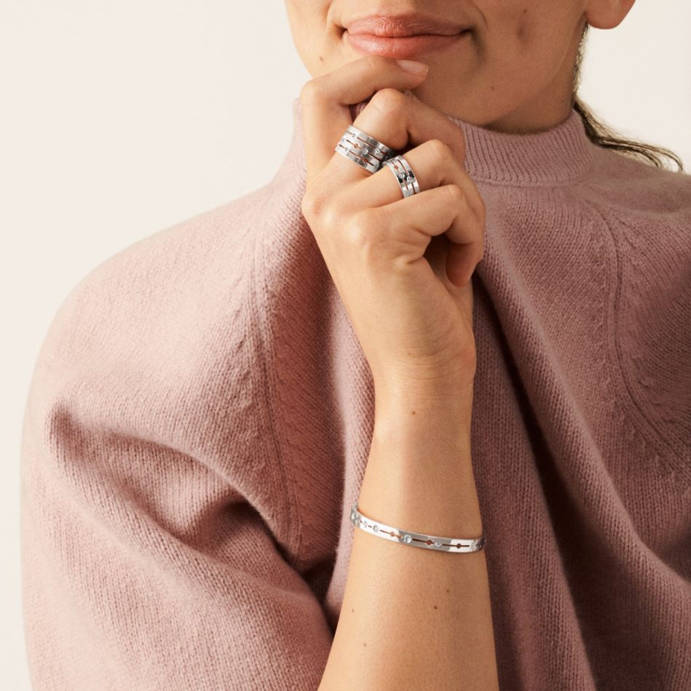 Bague Pulse 3 rangs en or blanc 18 carats sertie de diamants.