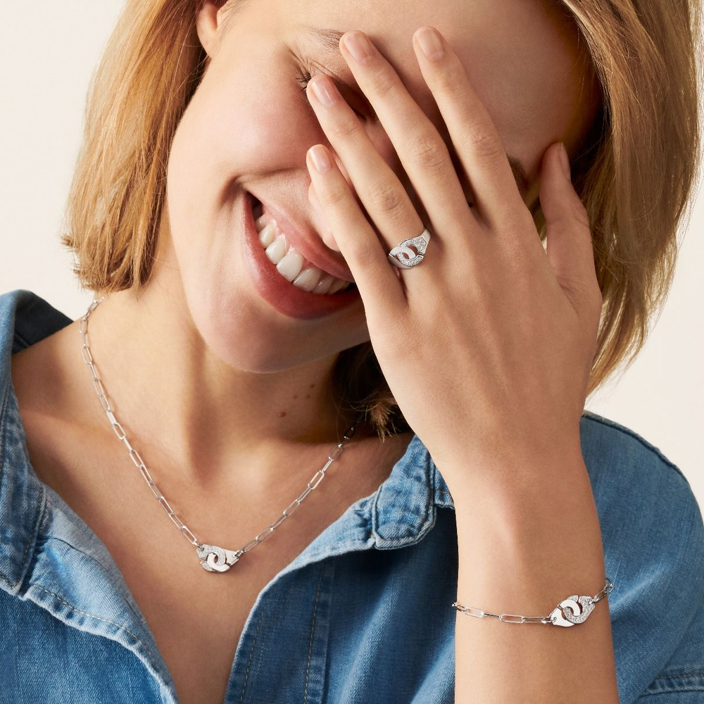 Le fermoir iconique de la Maison dinh van semi-pavé se décline en bracelet sur chaîne, pour un porté raffiné et élégant.