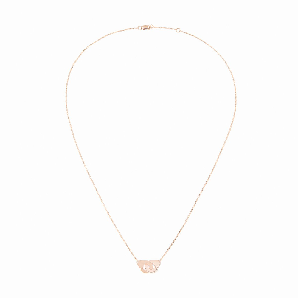 Deux menottes enlacées, un fermoir qui semble presque impossible à démêler. Le motif iconique de la Maison se décline sur une chaîne fine. Un collier symbole d'union, qui incarne l’amour, l’amitié, le lien.