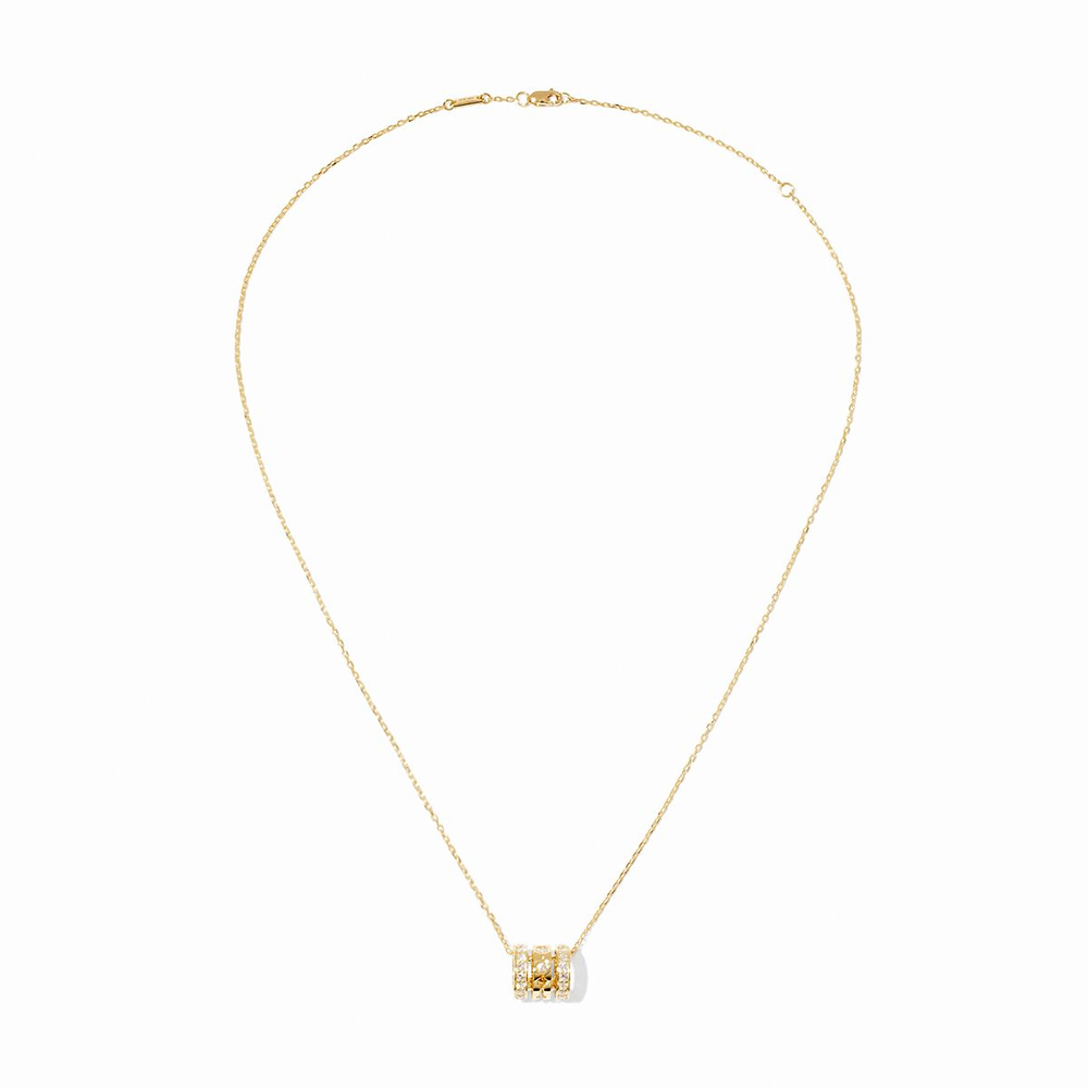 Les codes de la collection Pulse se décline sur un pendentif cylindrique dans une version pavée diamants.
