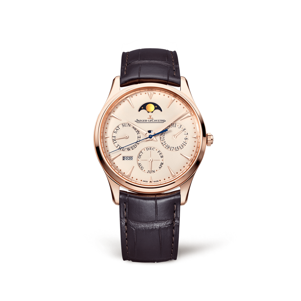 Expression pure et raffinée de la maîtrise horlogère de Jaeger-LeCoultre, la Master Ultra Thin Perpetual en or rose touche au cœur les amateurs de belles montres à complications.