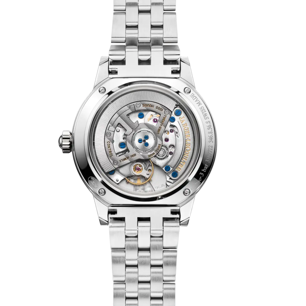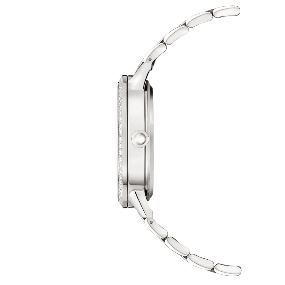 La lune et le soleil dansent leur ballet tout au long des heures qui s’écoulent sur cette montre Rendez-Vous Night & Day en acier. Dans son halo de diamants, ce modèle séduira les amoureuses d’objets précieux.