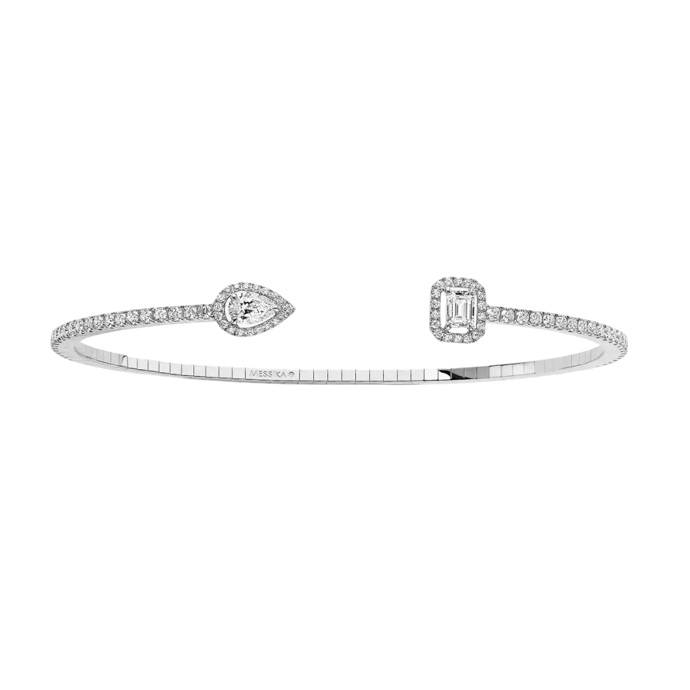 Associer le concept Skinny aux diamants lumineux de la collection My Twin. A porter au plus près de la peau, ce bracelet My Twin Toi & Moi Skinny Toi & Moi 0,15ct en or blanc 18 carats associe savoir-faire joaillier et expertise diamantaire de la Maison Messika. Ce bracelet diamant met en lumière deux tailles : la taille poire et la taille émeraude, sublimées par un délicat entourage de diamants taille brillant éclatants. Ce bracelet est doté du concept Skinny : un système de nano-ressorts invisibles en or confère confort et flexibilité au bijou. L’or blanc est facile à porter. Sa teinte discrète en fait le métal de prédilection, y compris des femmes qui n’ont pas l’habitude de porter des bijoux. Elle s’assortit à toutes les garde-robes, sublimant une séduction naturelle.