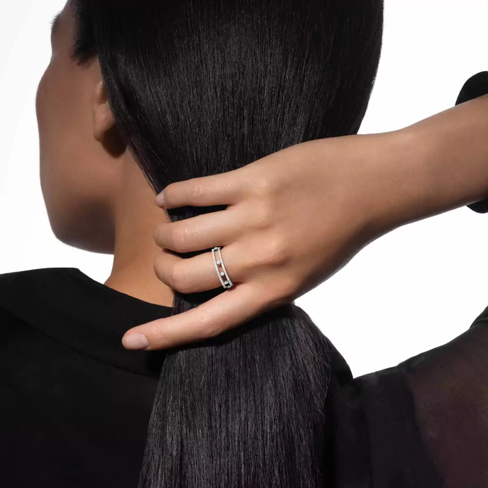 La bague diamant en or blanc Move Romane est également disponible en or rose et en or jaune