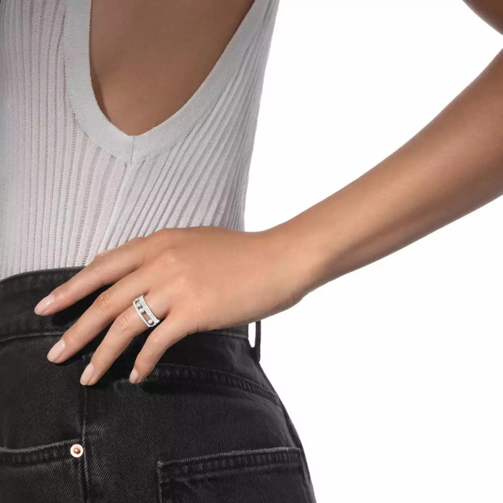 La bague diamant pavée en or blanc Move Romane est également disponible en or rose et en or jaune