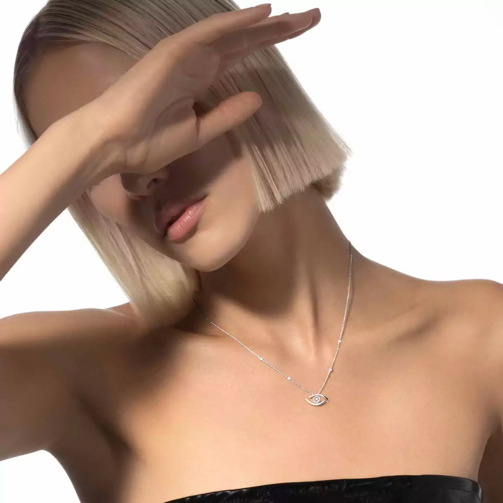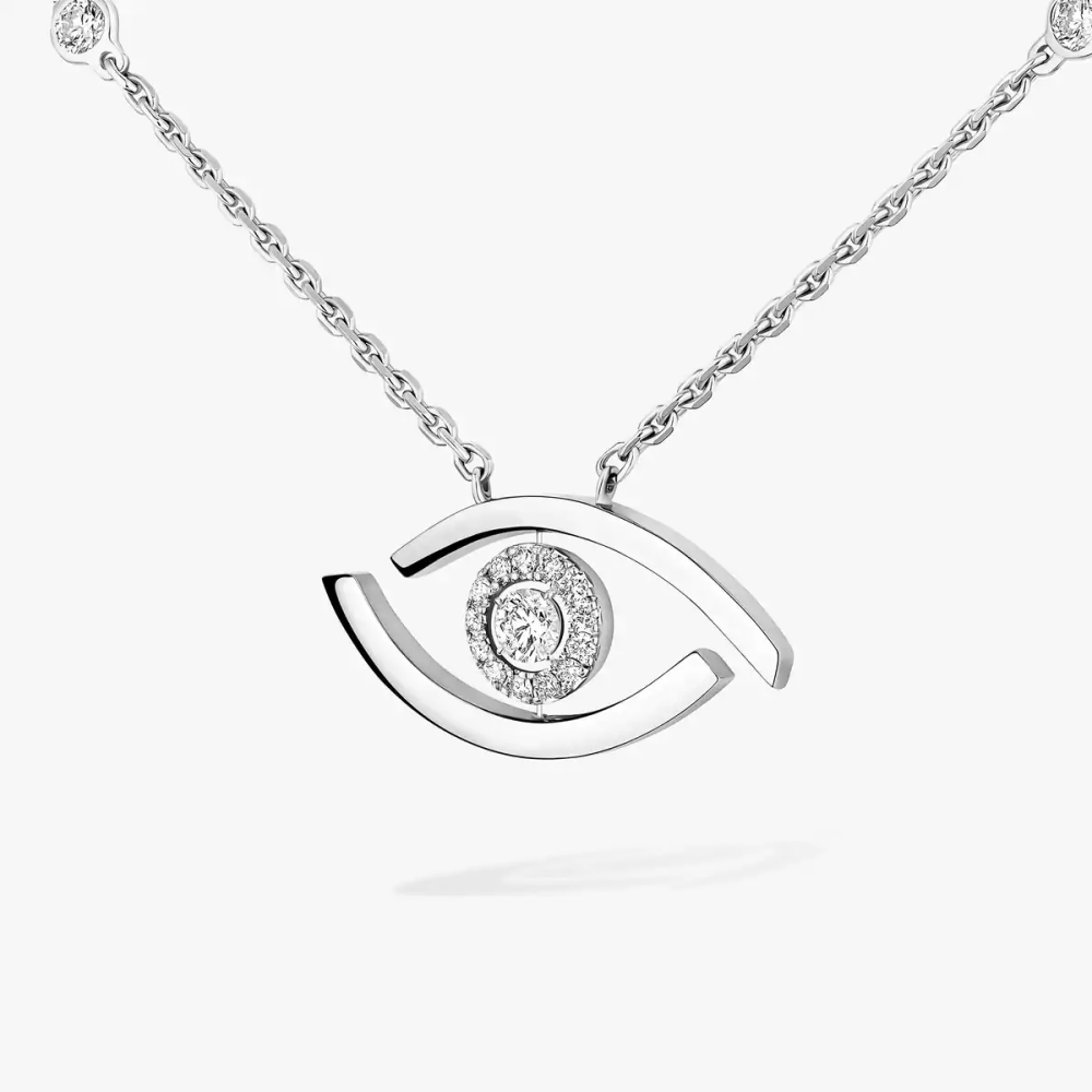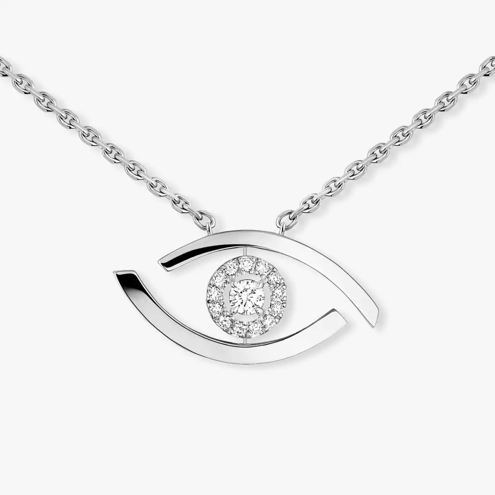 Le collier diamant Lucky Eye est également disponible en or rose et en or jaune.