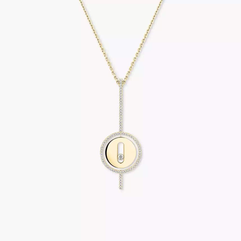 Nouvelle déclinaison du motif signature de la Maison, Lucky Move réinvente le pendentif médaille dans un esprit graphique et moderne. Bijou de luxe aux lignes essentielles, à la fois féminin et moderne, le collier diamant Lucky Move Arrow en or jaune se fera une place de choix dans vos accessoires du quotidien. Sobre et lumineux, vous apprécierez son esthétique entre rondeur et minimalisme. Addictif, la pastille d’or est réversible et tourne à l’infini.Le design épuré de ce collier diamant femme permet de le porter seul ou pour un look plus pointu, en accumulation avec d'autres colliers diamant femme des collections Messika.