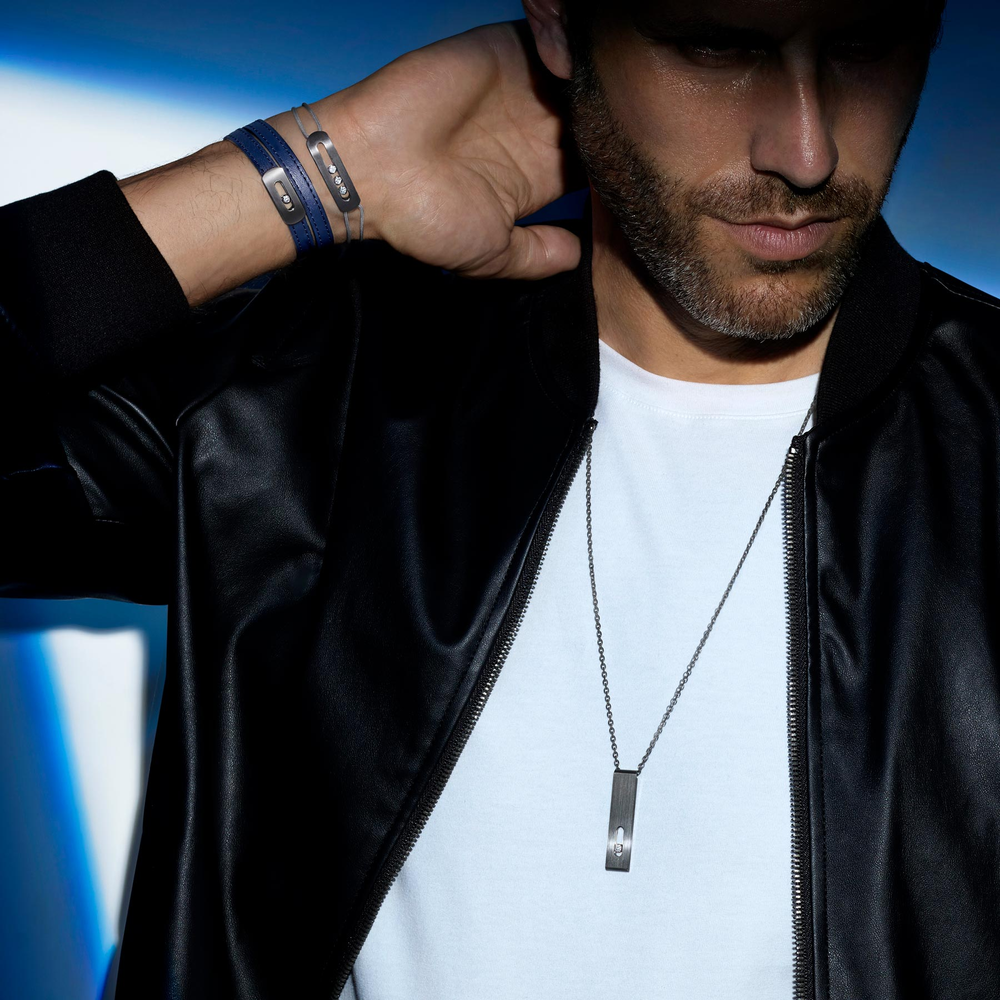 Dans la tendance des bracelets sur cordon, retrouvez ce bracelet diamant sur cordon Move Titanium Graphite. C'est le cadeau idéal à s'offrir ou à offrir pour un anniversaire, une fête des pères ou un autre instant précieux. Dans sa version graphite gris foncé, le titane résonne en parfait contraste avec la couleur du cordon. Un bijou de luxe qui s'accorde avec toutes les tenues sans fausse note avec élégance, en opposant la force du titane gris foncé à l'éclatante blancheur des trois diamants taille brillant en mouvement. Notre conseil ? Facile à enfiler, ce bracelet diamant homme peut se porter seul, avec sa montre ou en accumulation avec un deuxième bracelet Move Titanium.