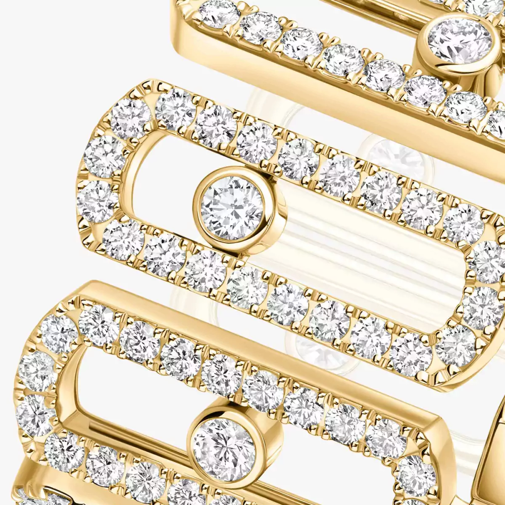 Bijou de luxe de Haute Joaillerie, la bague diamant femme Move Iconica se décline dans une version or jaune entièrement pavée de diamants. L’éclat solaire de l’or sublimé par la brillance des diamants impulse une aura intense à ce bijou diamant présenté lors du défilé Messika. Harmonie parfaite entre géométrie et mouvement, l’iconique motif Move se réinvente autour d’une chaîne d'or carrée, explorant une nouvelle ligne graphique. Sublime en association avec les autres pièces de la collection, cette bague or et diamant signe votre silhouette d’un style unique.