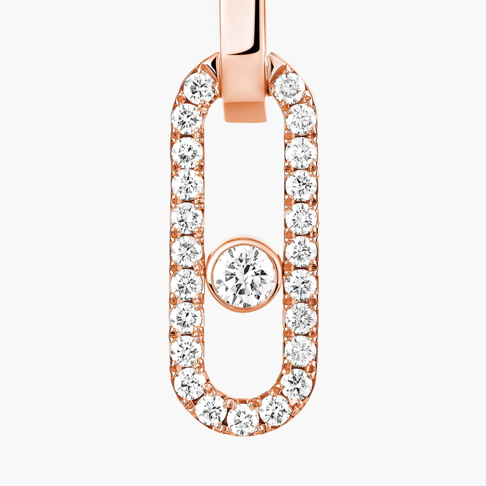 Versatiles et innovantes, ces boucles d’oreilles de luxe Move Link or rose, transformables, s’adapteront à toutes vos envies. Mixez, osez, inventez votre style grâce aux maillons inférieurs qui se détachent et s’attachent en un tour de main et en toute sécurité. Ces boucles d’oreilles diamant vous offrent trois portés inspirants : pendantes simples pour tous les jours, version longue en soirée, asymétriques pour plus d’originalité. Subtil éclat, la partie détachable peut également se porter en pendentif.