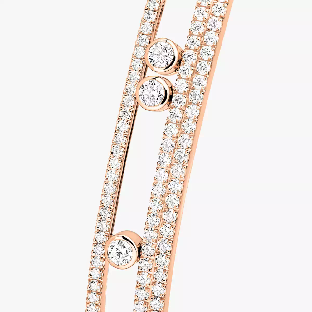 Pièce signature, le bracelet jonc Move Romane se décline ici dans une version au pavage éclatant. Ce bracelet de luxe dessine un bel équilibre de forme où trois diamants mobiles coulissent librement entre deux bandeaux d'or. Ce jeu d’asymétrie précieuse et moderne met encore plus le diamant à l'honneur, sublimé ici par la douceur de l’or rose. Son design aux lignes minimalistes et architecturées sera la touche d’élégance de votre silhouette. Associé avec la bague de luxe Move Romane pavée, on adore ce jeu de lumière intense qui fera scintiller chacun de vos gestes.