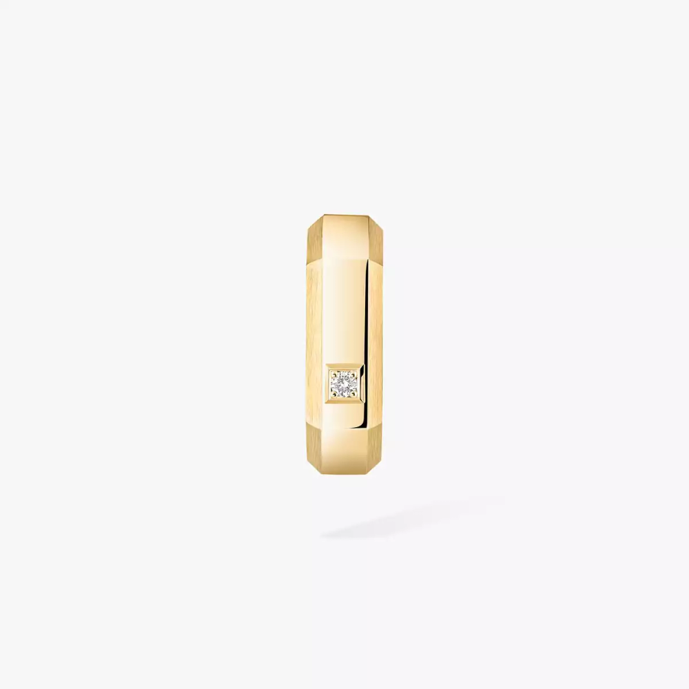 La mono boucle d'oreille Moderniste en or jaune est également disponible en or blanc et en or rose.