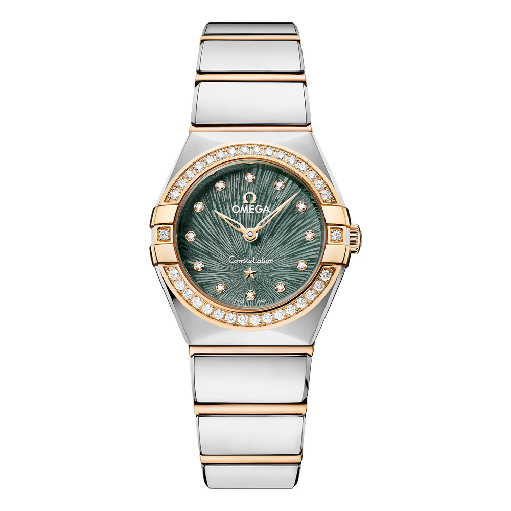Ce modèle de 25 mm en acier inoxydable et or Moonshine™ 18K arbore une lunette éclatante pavée de diamants. Le cadran en PVD vert sapin est orné d’un motif Supernova unique réalisé par gravure électrochimique, ainsi que d’aiguilles et d’une étoile en or Moonshine™ 18K et d’index en diamants avec chatons en or Moonshine™ 18K.