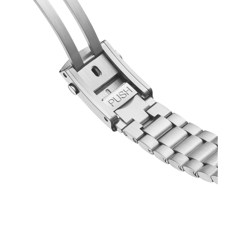La montre se distingue également par son fond vissé au design alvéolaire et son bracelet en acier inoxydable fermé par une boucle déployante extensible brevetée.