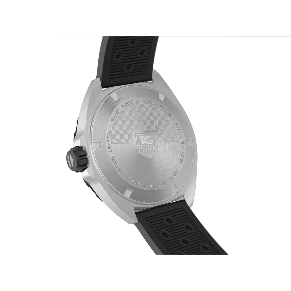 Montre de sport pour homme avec un cadran noir dans un boîtier en acier brossé. Le boîtier de 41 mm est en acier inoxydable brossé, assorti d'une lunette tournante unidirectionnelle en acier PVD noir et d'une couronne vissée. Son allure est sportive, urbaine et audacieuse.