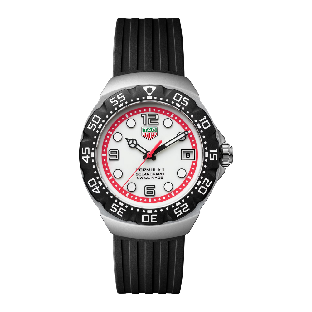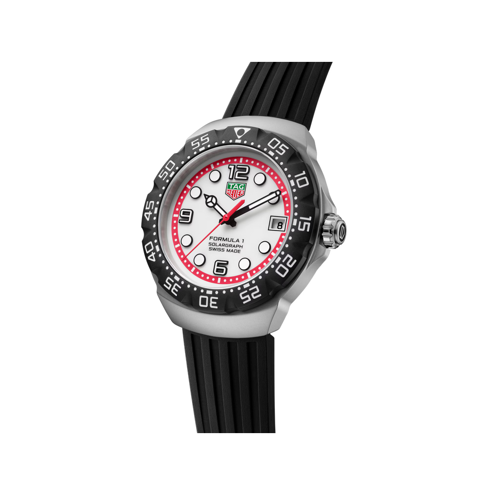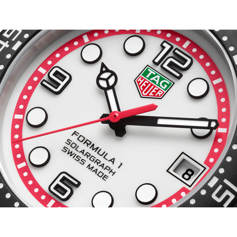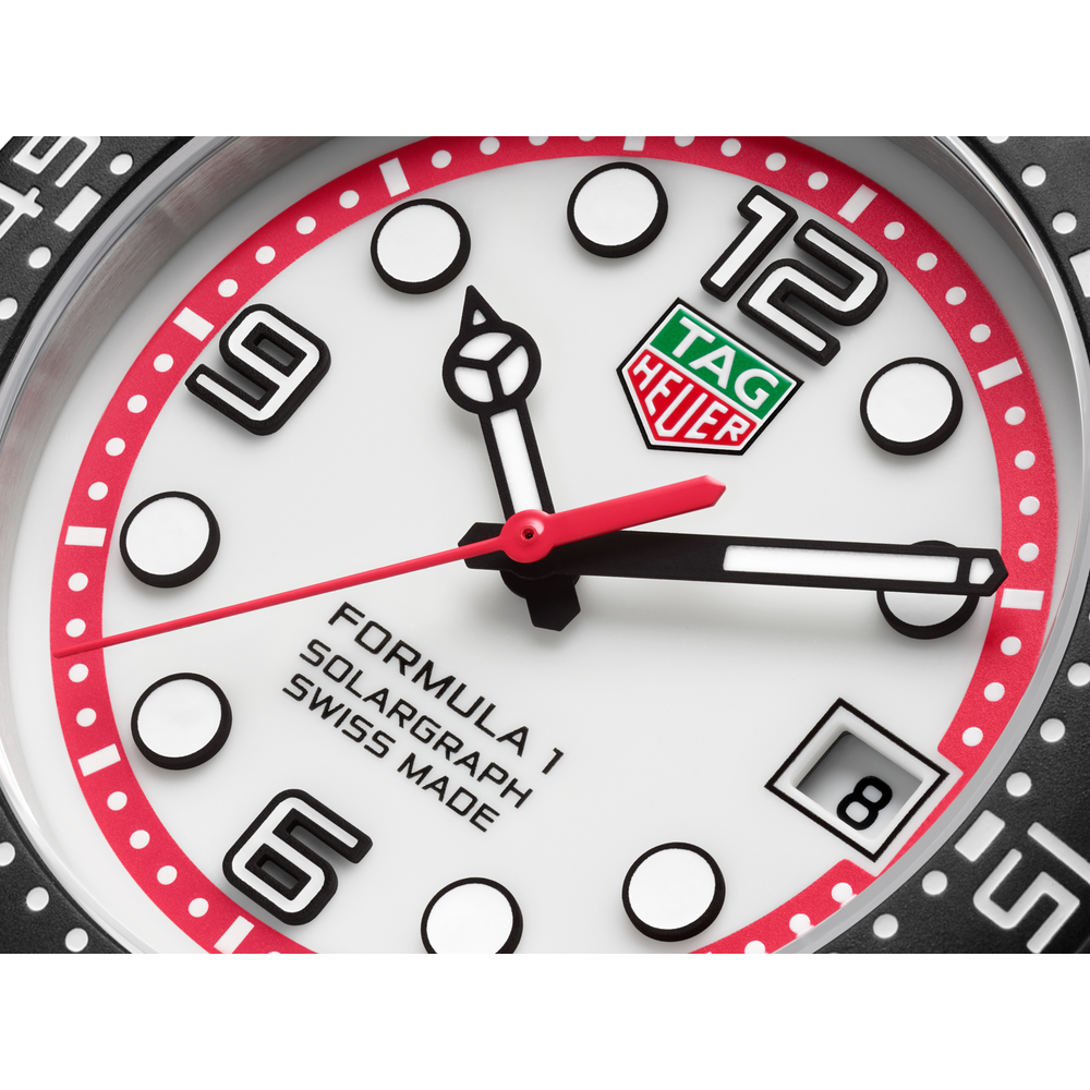 Munie d’un cadran accentuté de rouge et de noir, la TAG Heuer Formula 1 Solargraph (38 mm) repousse les limites avec son design dynamique et sa technologie Solargraph avancée. Une réinterprétation moderne et pleine d’audace de l'emblématique Series 1 des années 80.