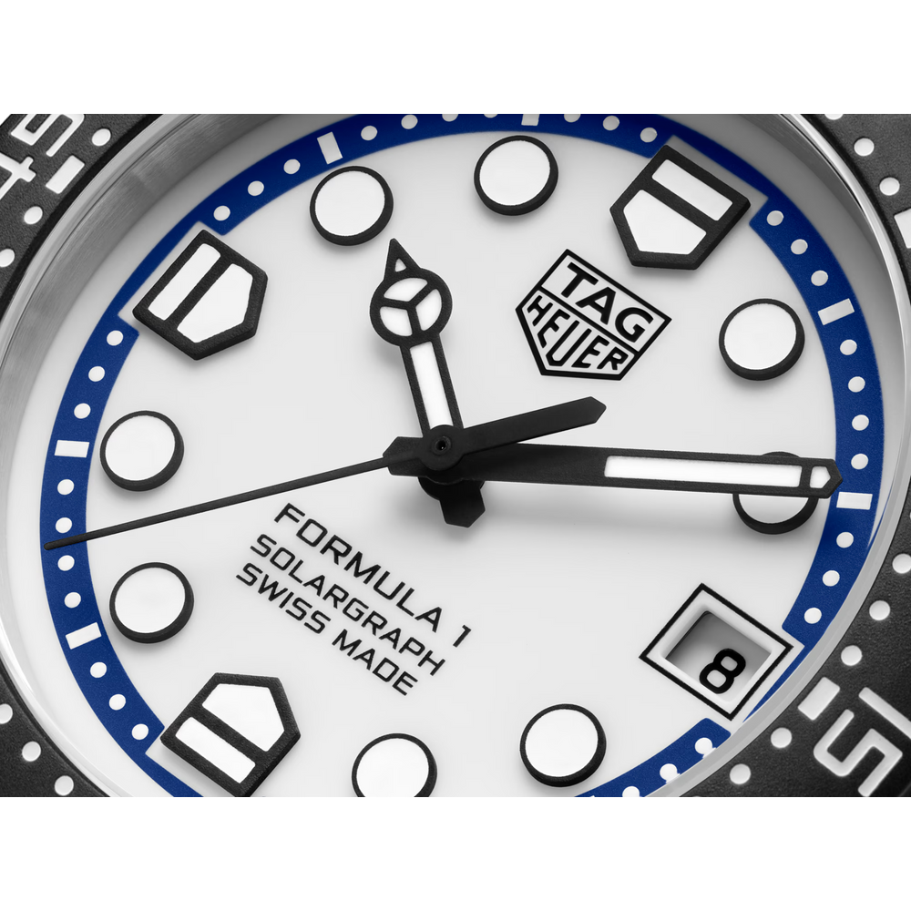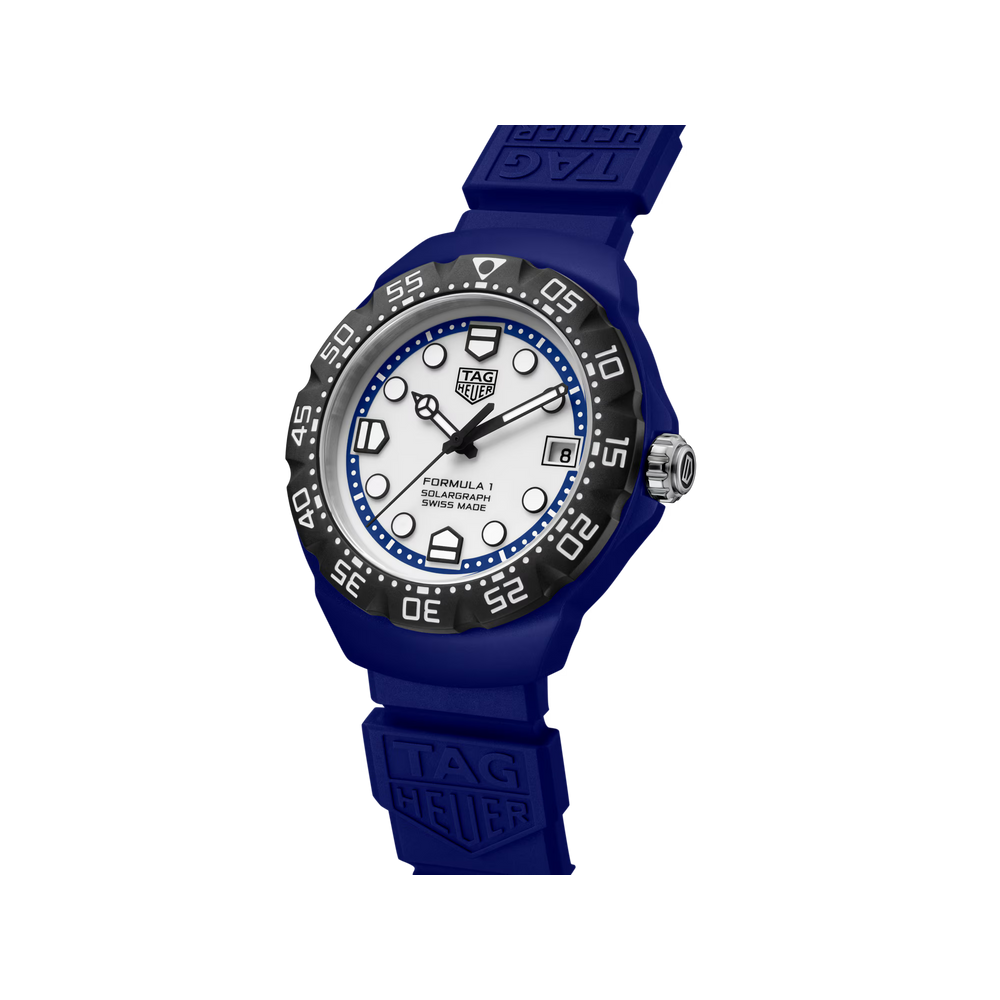 La TAG Heuer Formula 1 Solargraph (38 mm) déploie son audacieux design associant un boîtier bleu en TH-Polylight à un mouvement à énergie solaire. Alliant matériaux innovants et technologie de pointe, cette montre réinvente avec panache l’emblématique Series 1 des années 80.